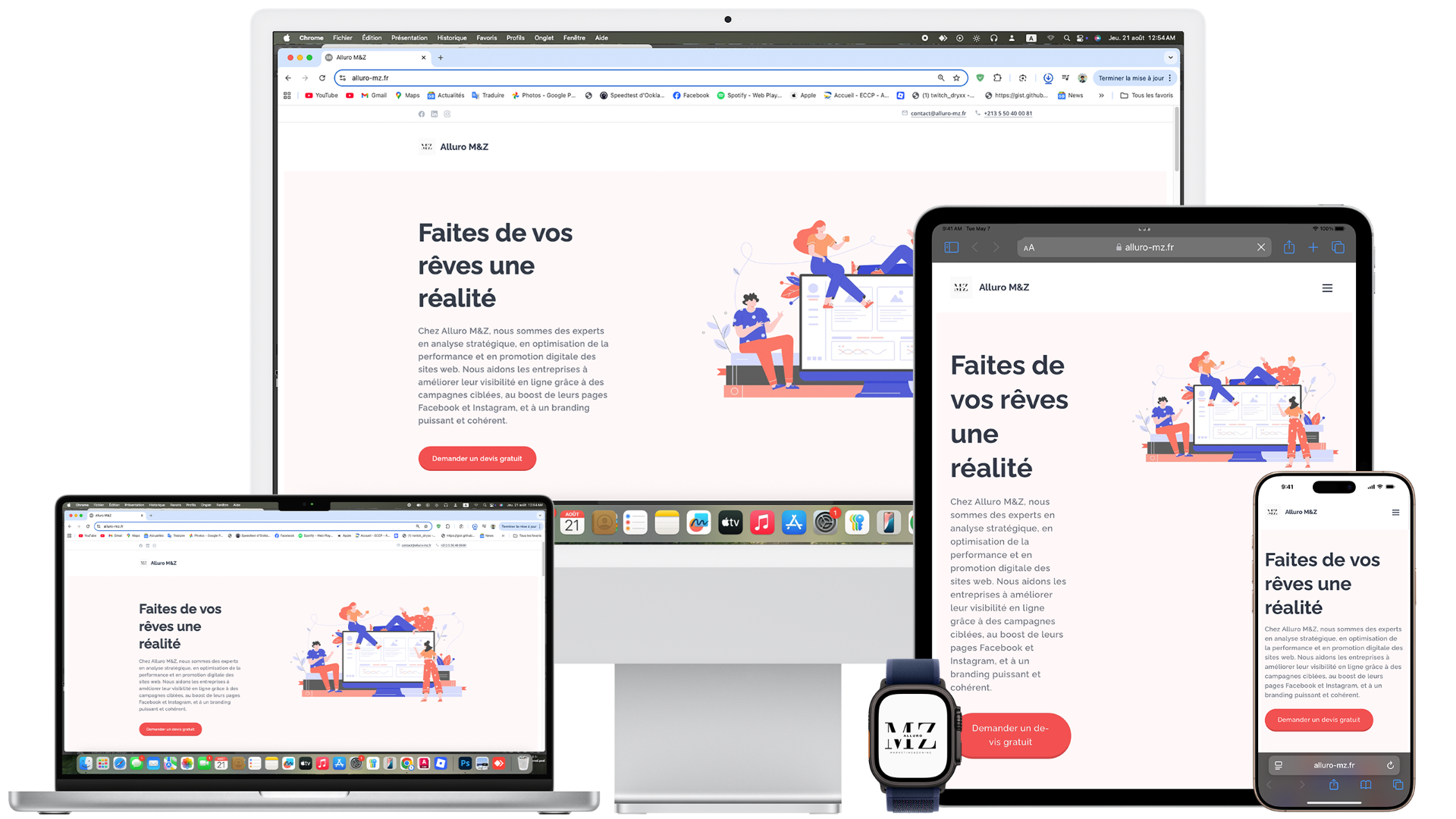 Chez Alluro M&Z, nous sommes des experts en analyse stratégique, en optimisation de la performance et en promotion digitale des sites web. Nous aidons les entreprises à améliorer leur visibilité en ligne grâce à des campagnes ciblées, au boost de leurs pages Facebook et Instagram, et à un branding puissant et cohérent.